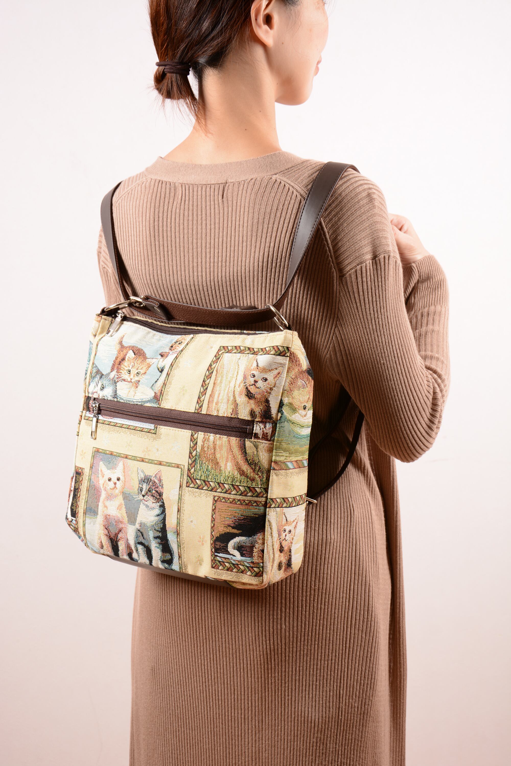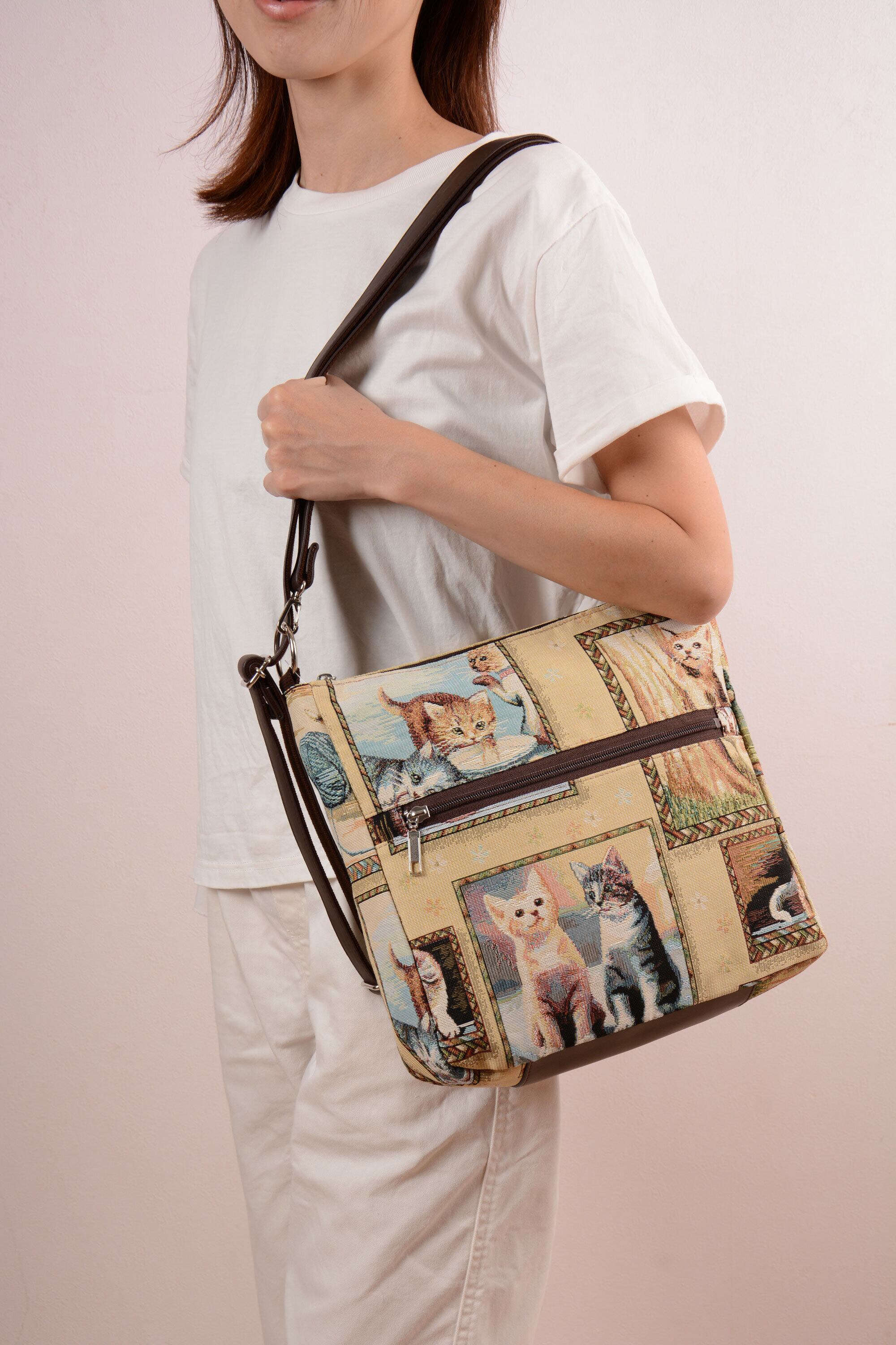 上質なヨーロッパ製のゴブラン生地を使用した機能的なバッグ。